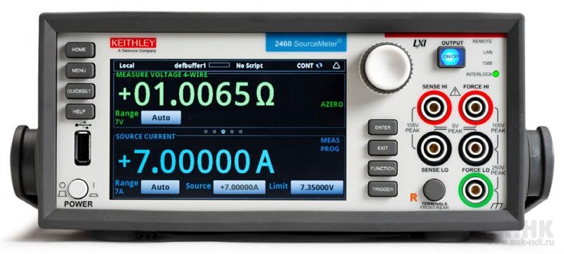 Калибратор-мультиметр 2461 это программируемый источник тока и напряжения со встроенным прецизионным мультиметром 6 1/2 разрядов и  построением ВАХ с отображением на экране (характериограф).