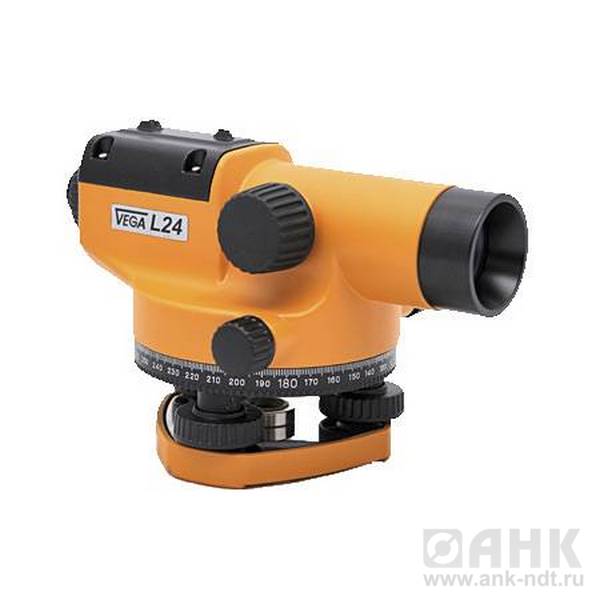 По типу точности оптический нивелир можно отнести к техническим измерительным инструментам. Прибор устанавливается на штатив как с плоской, так и со сферической головкой. Для наведения на нивелирную рейку нивелир Vega L24 оборудован специальным прицелом на верхней части корпуса. Горизонтирование прибора осуществляется с помощью трёх опорных винтов с плавным ходом и специального круглого уровня.