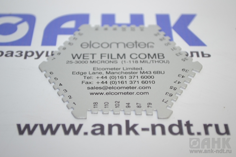 Диапазон измерения гребенки Elcometer 112AL находится в пределах от 25 до 3000 мкм. На одной стороне гребенки нанесены метрические единицы (мкм), на другой стороне  - британские единицы милс.