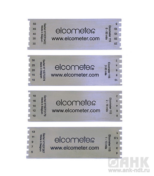 Поставляются 4 модели гребенок Elcometer 115 с диапазоном измерения до 1270 мкм.