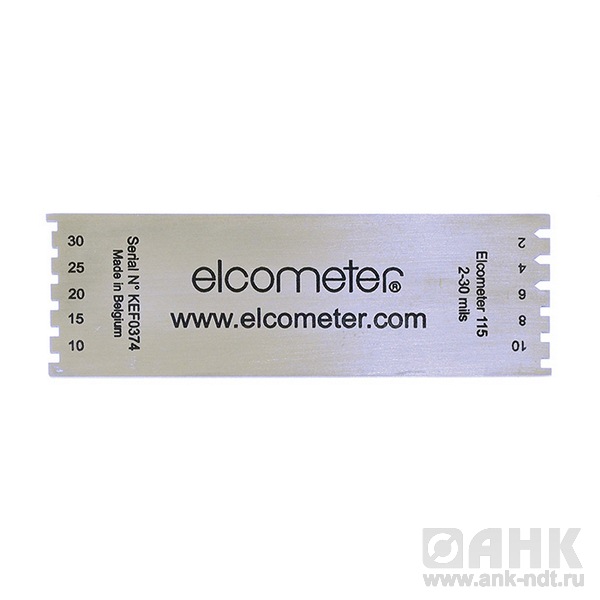 Прямоугольная гребенка Elcometer 115 (диапазон 20-325 мкм, номиналы 20, 35, 50, 75, 100, 125, 175, 225, 275, 325 мкм)