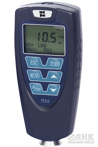 Толщиномер покрытий TT 210 - ультракомпактный цифровой толщиномер со встроенным датчиком для измерения толщины покрытий как на магнитном, так и на немагнитном основании с расширенной памятью на 500 данных измерения.