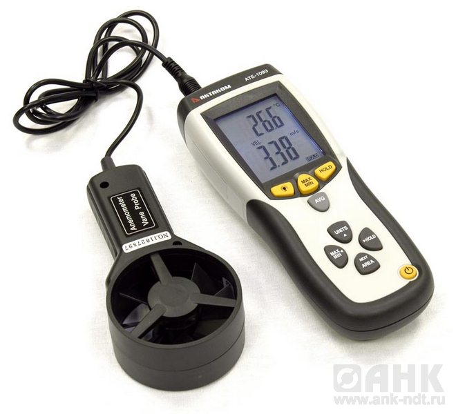 Портативный крыльчатый анемометр, позволяет быстро и точно измерить скорость движения воздушного потока, его температуру и объем воздуха проходящего через сечение воздуховода. Помимо измерения скорости прибор вычисляет объем проходящего через крыльчатку воздуха. Прибор имеет инновационный дизайн корпуса.