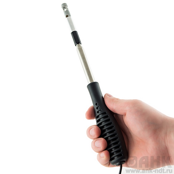Измерительный элемент зонда представляет собой тонкую нить накаливания, которая нагревается выше температуры окружающей среды и впоследствии охлаждается проходящими через нее воздушными потоками. С изменением скорости потока воздуха, а также плотности, изменяется и сопротивление нити накаливания. Одной из главных отличительных особенностей анемометра Мегеон 11010 являются небольшие габариты измерительного зонда. Благодаря этому прибор можно использовать даже в самых труднодоступных местах.