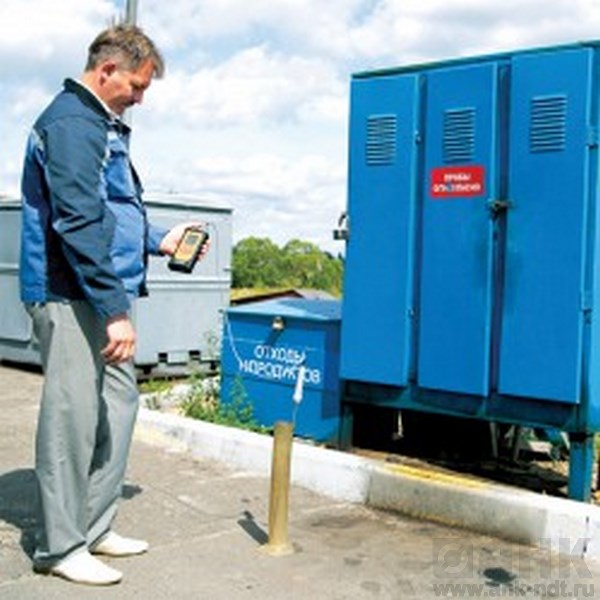 Измерение температуры при проверке качества топлива в пробоотборниках.