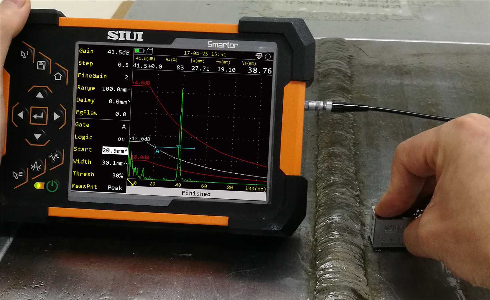 Ультразвуковой дефектоскоп Smartor – новый продукт от китайской компании SIUI c лучшим сочетанием возможностей дефектоскопа и толщиномера. Дефектоскоп легкий и компактный, специальное крепление позволяет производить измерения одной рукой. При весе 0,9 кг с аккумулятором и габаритных размерах 198х128х52 мм, Smartor обладает всеми функциями традиционного UT контроля и мощного толщиномера. Мощности прибора достаточно для проведения UT контроля в диапазоне от 0 до 15000 мм, в режиме толщиномера от 0,5 до 600 мм. Производитель обеспечил дефектоскоп надежным противоударным корпусом по классу защиты IР 65. Smartor не боится тяжелых условий эксплуатации. Пыль, влага и изменения температуры в диапазоне от -10° + 45°С не влияют на производительность и точность прибора. Портативный УЗ дефектоскоп Smartor соответствует европейским стандартам по неразрушающему контролю EN12668-1: 2010 по UT контролю и EN15317-2007 для функции толщиномера.