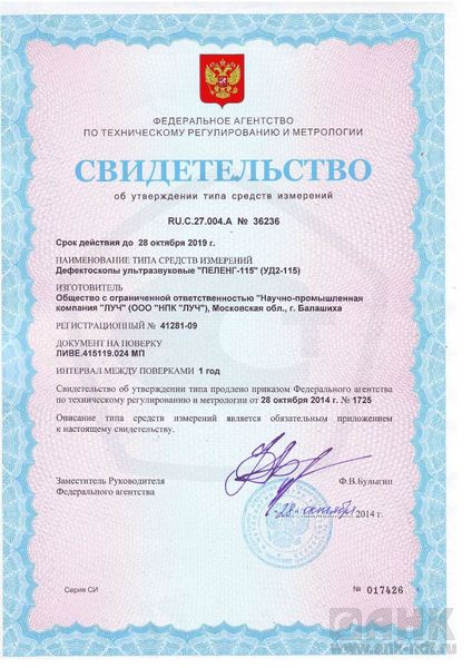 Луч Ультразвуковой дефектоскоп ПЕЛЕНГ-115 240000.00