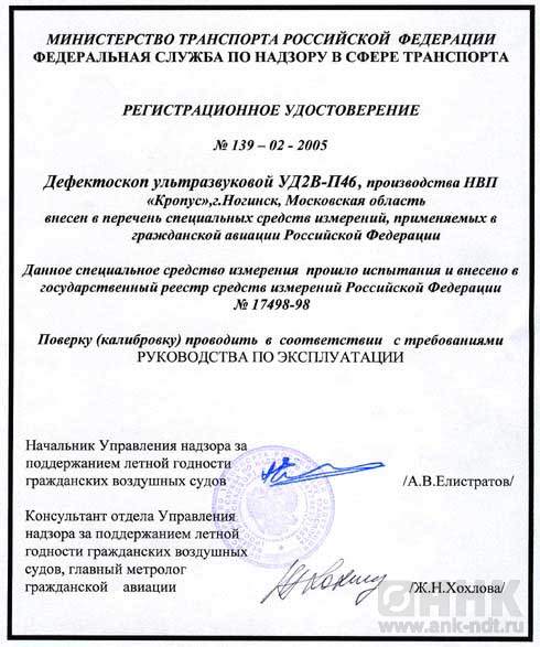 УД2В-П46 прост и удобен в обращении, аттестован в Госстандарте России, зарегистрирован в Государственном реестре средств измерений и допушен к применению в Российской Федерации, Казахстане, Украине,и Белорусии.