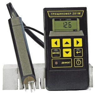Портативный трещиномер 281М предназначен для оперативного измерения глубины трещин выходящих на поверхность изделий из ферромагнитных металлов в диапазоне 0-100 мм.