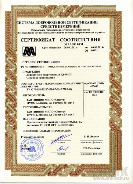 НИИИН МНПО Спектр Вихретоковый дефектоскоп ВД-90НП 295000.00