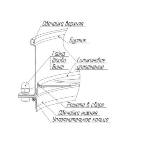 В месте крепления решета и на верхнем торце обечайки выполнены круговые буртики, обеспечивающие жесткость сита.